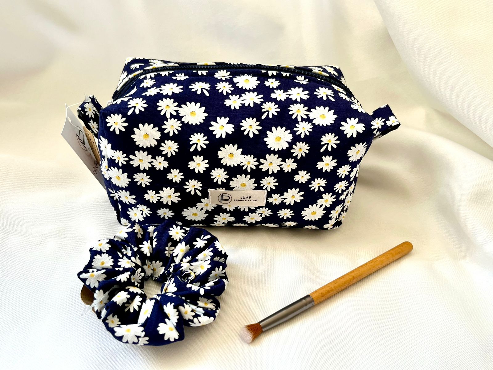 Necessaire box tamanho P (altura 10 cm x largura 17 cm x profundidade 10 cm): Ideal para organizar seus itens essenciais de forma compacta e segura, seja em viagens ou no dia a dia. Disponível com estampa floral.